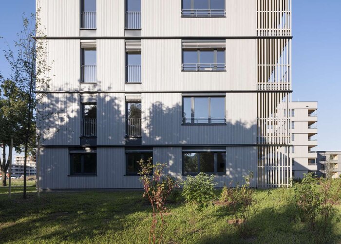 V současné době se v areálu Reininghaus, historického pivovaru ve Štýrském Hradci, staví nová čtvrť – nebo spíše městečko ve městě: 5 000 bytů, školní kampus, kanceláře, rozmanitá sociální infrastruktura a prostorné zelené plochy. Každá z 18 částí (Quartiere) je realizována různými developery, kteří se spojili v radě vlastníků, aby dali různým individuálním projektům společný rámec. V případě Quartier 7 (Q7), ekologického vlajkového projektu v areálu Reininghaus, se jedná o neziskové bytové družstvo ENW a neziskové bytové a sídlištní družstvo Ennstal. Vypsali architektonickou soutěž, z níž jako vítěz vzešla architektonická kancelář balloon architekten se sídlem v Grazu. Ale přesvědčivý byl i druhý koncept od Hohensinn Architektur se sídlem rovněž v Grazu. Developeři proto vzali na palubu oba týmy a u kanceláře balloon objednali návrh tří dílčích částí a Hohensinn Architektur dostali za úkol zpracování čtvrté části na základě urbanistického konceptu od balloon architekten. V úzké spolupráci obou architektonických kanceláří byl realizován soubor staveb, který využívá možností moderních technologií dřevostaveb a vytváří harmonické obytné prostory - uprostřed města a přitom v zeleni.