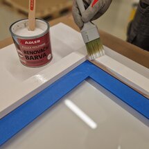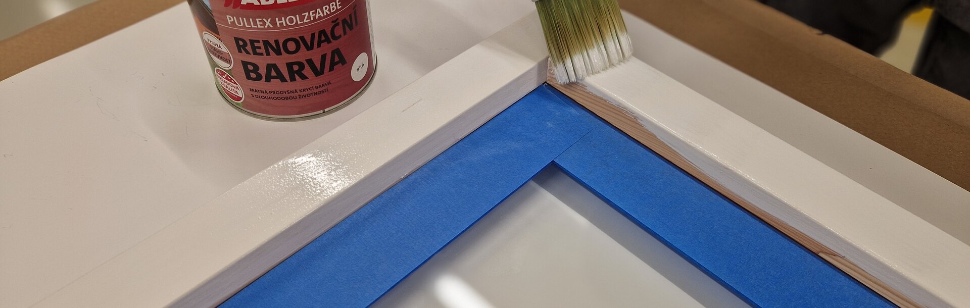 Po zaschnutí nátěru odstraňte maskovací pásku a našroubujte zpět panty a kování. A okno je hotovo!