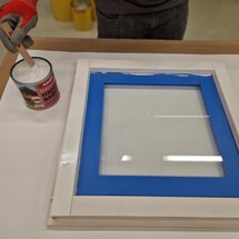 Vyšroubujte panty a kování, vyjměte těsnění. Sklo oblepte maskovací páskou.